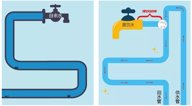 說(shuō)得簡(jiǎn)單點(diǎn),直飲水在水管里一直在循環(huán)流動(dòng),系統(tǒng)還經(jīng)常殺菌消毒,根本不會(huì)變成靜置“死水”。